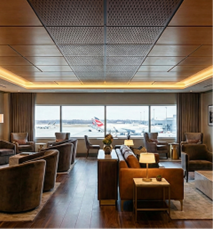 Major ceiling beam package for an international airport terminal. 10-foot custom ceiling beams across a scope comparable to 70,000 linear feet of ceiling systems. Multi-month